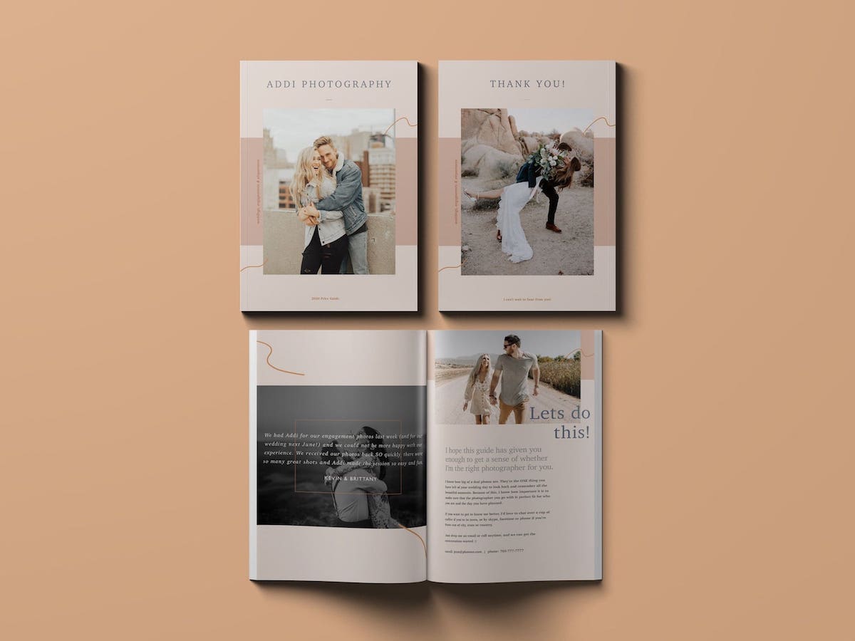 Designed to attract your ideal brides-to-be. With warm colors, modern layouts & gorgeous full page images. This Photography Pricing Guide will separate you from other photographers and give your clients a WOW experience.