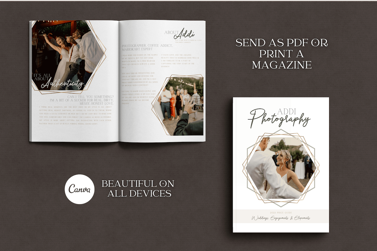 Build your photography business using these custom designed photography magazine templates. Designed for professional photographers with an earthy, organic style. All colors are totally customizable - This photography branding bundle is designed to impress.