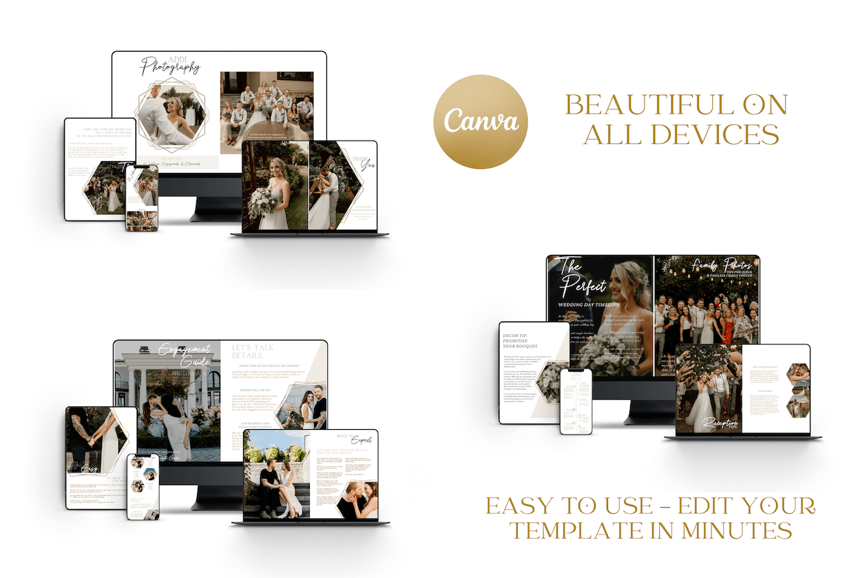 This bundle is built to give you a consistent photography business brand across your entire business with matching client guides, pricing sheets & what to wear guides. Perfect to send as digital pdfs online or to print.