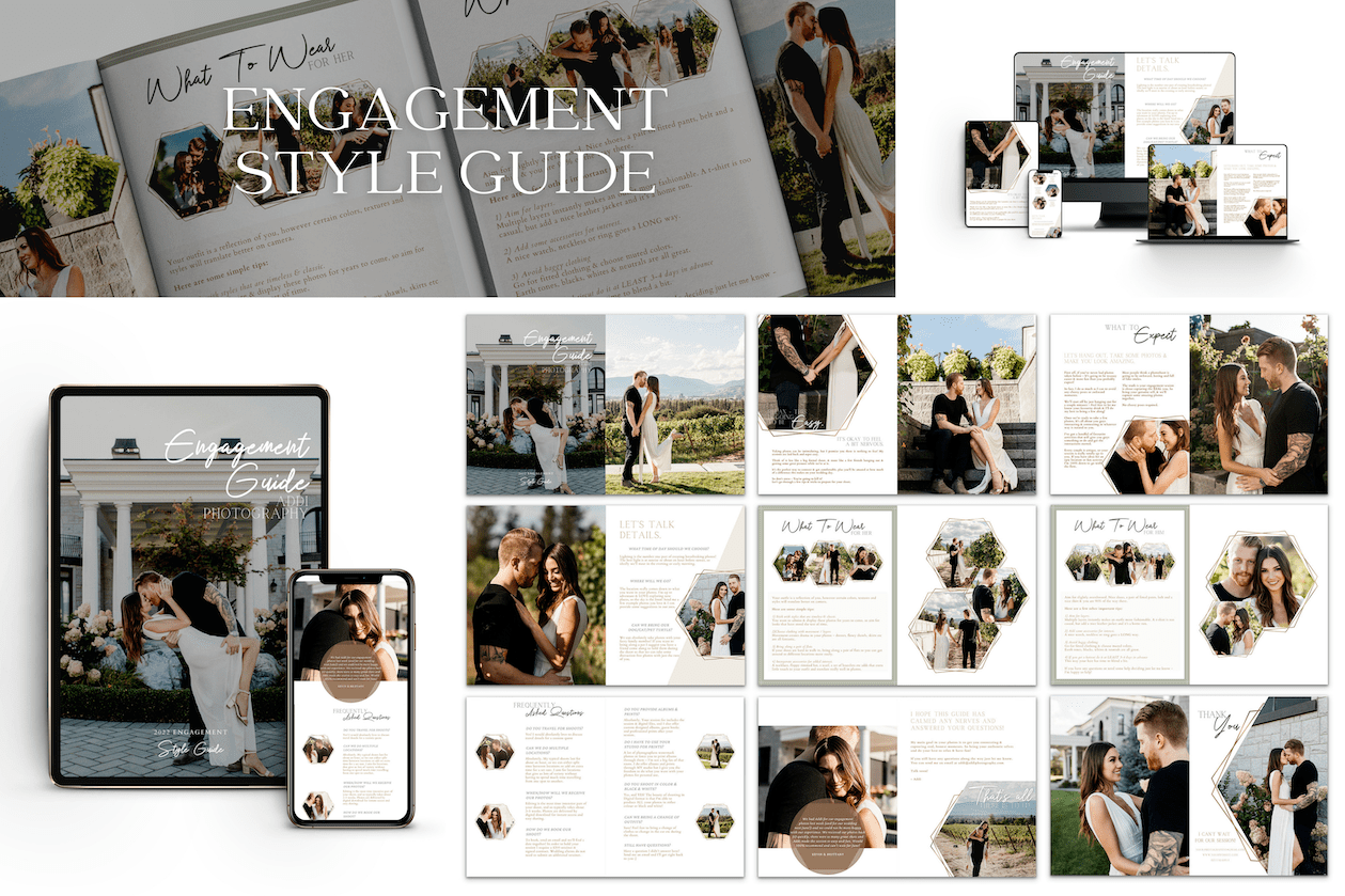 ENGAGEMENT SHOOT - Send couples a style guide magazine with outfit & accessory suggestions, location info and all the other details to make for an incredible experience and even better photos
