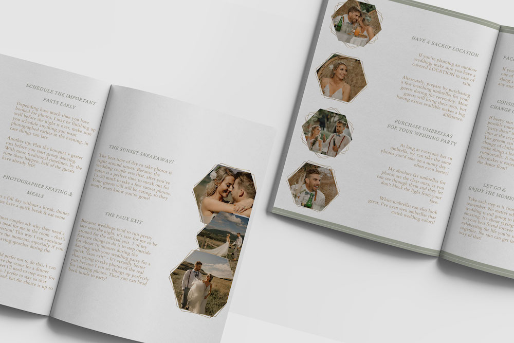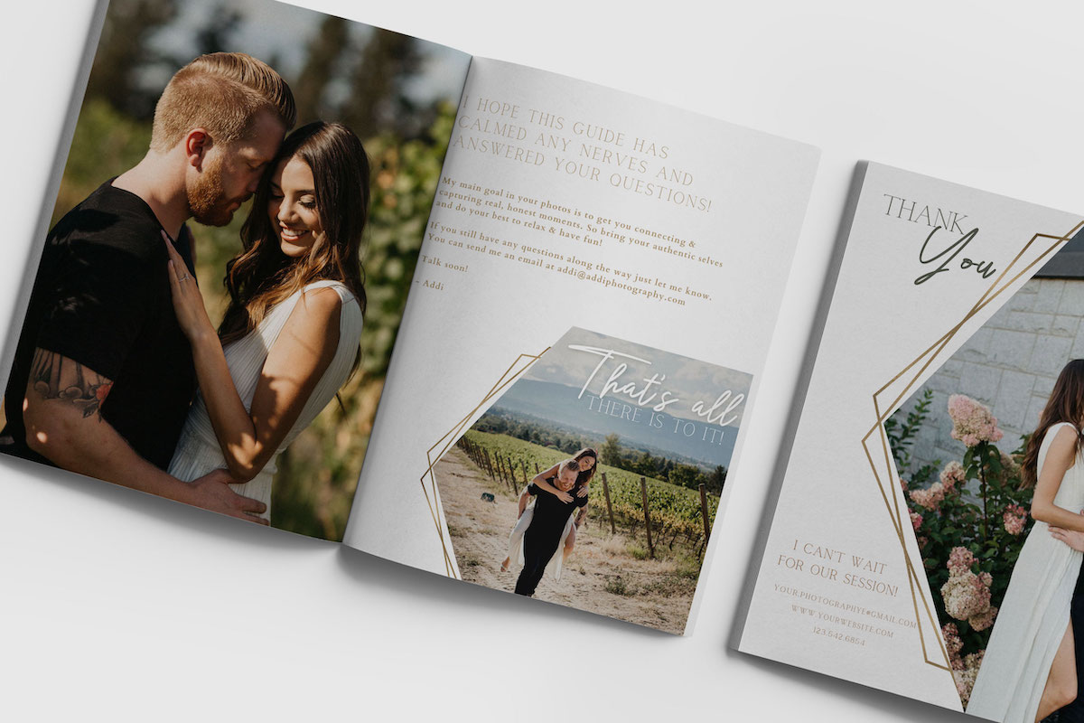 Every photography client guide includes professionally pre-written copy (text) To give you a starting point for crafting your own personal brand message. Written in an engaging, inviting style by a professional writer.