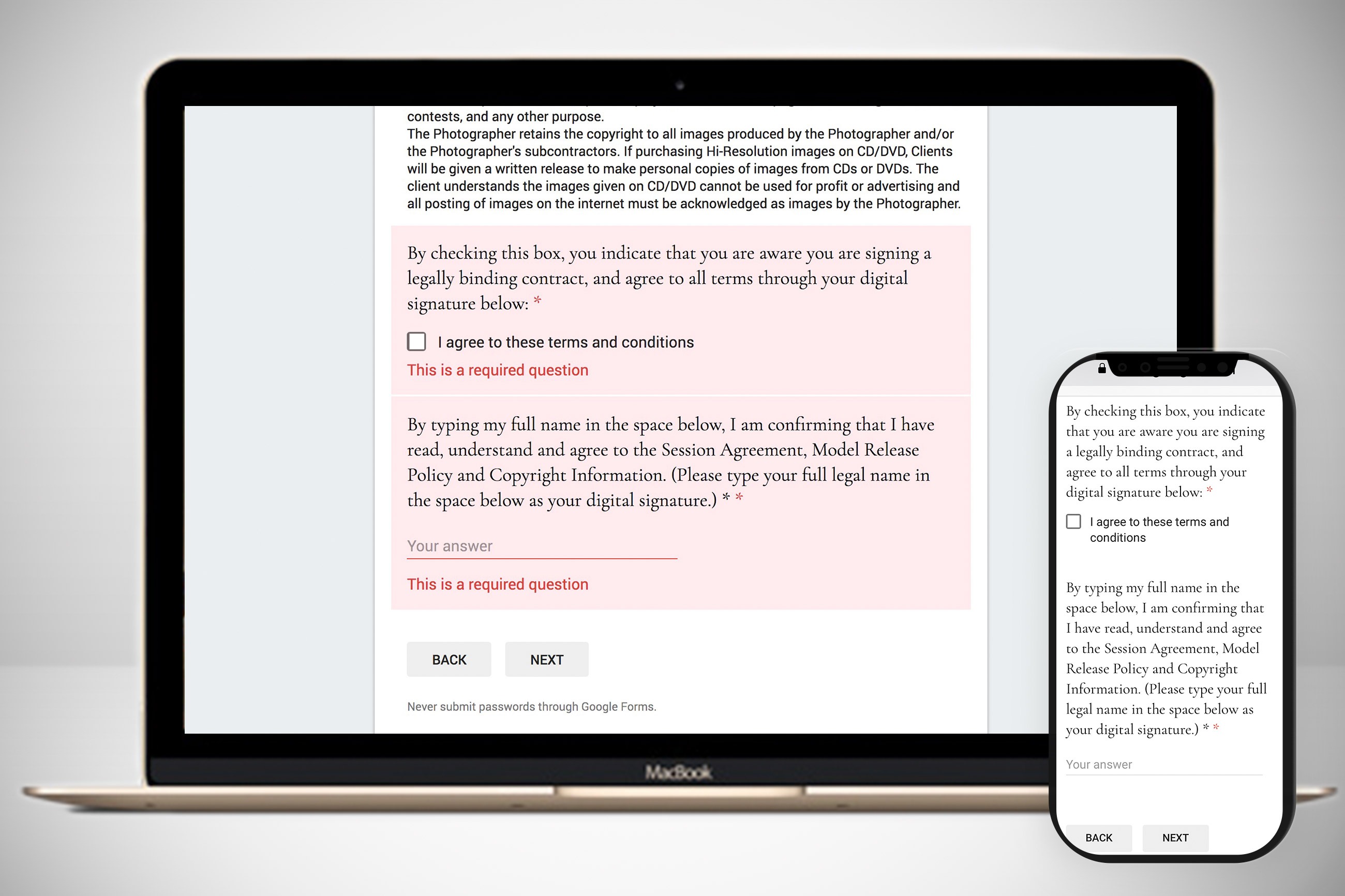 **A real working session contract has been provided in the template, however what works in one state / country may be totally different in another. Always do your homework and ensure your contract meets the regulations and needs of your location and business.**