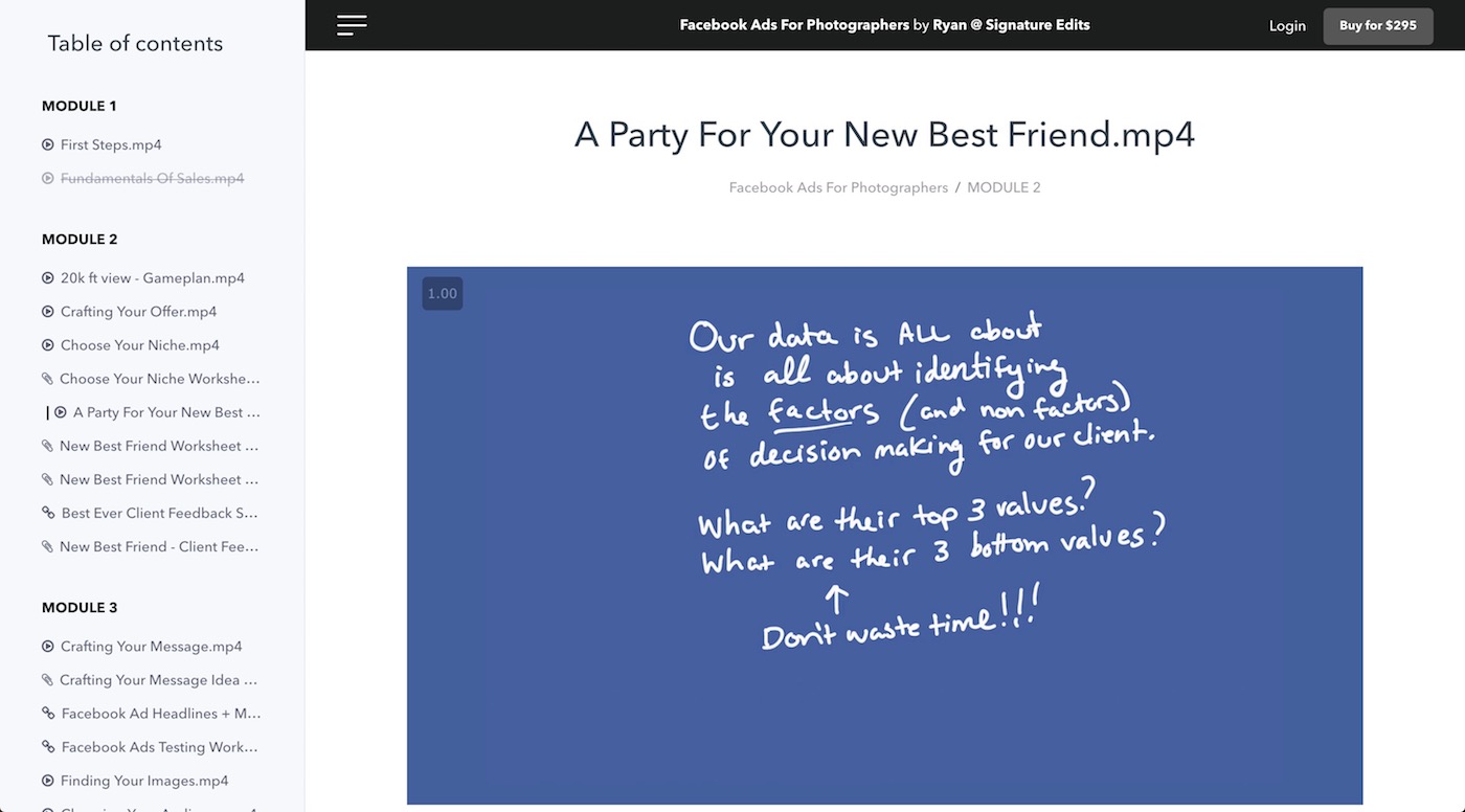 As I looked at other facebook courses, I realized this was a common problem. They may have had great concepts and techniques, but a huge portion of what they were saying just didn't work for photographers.