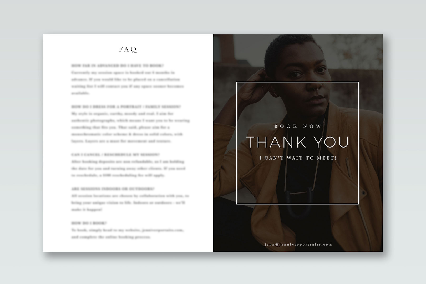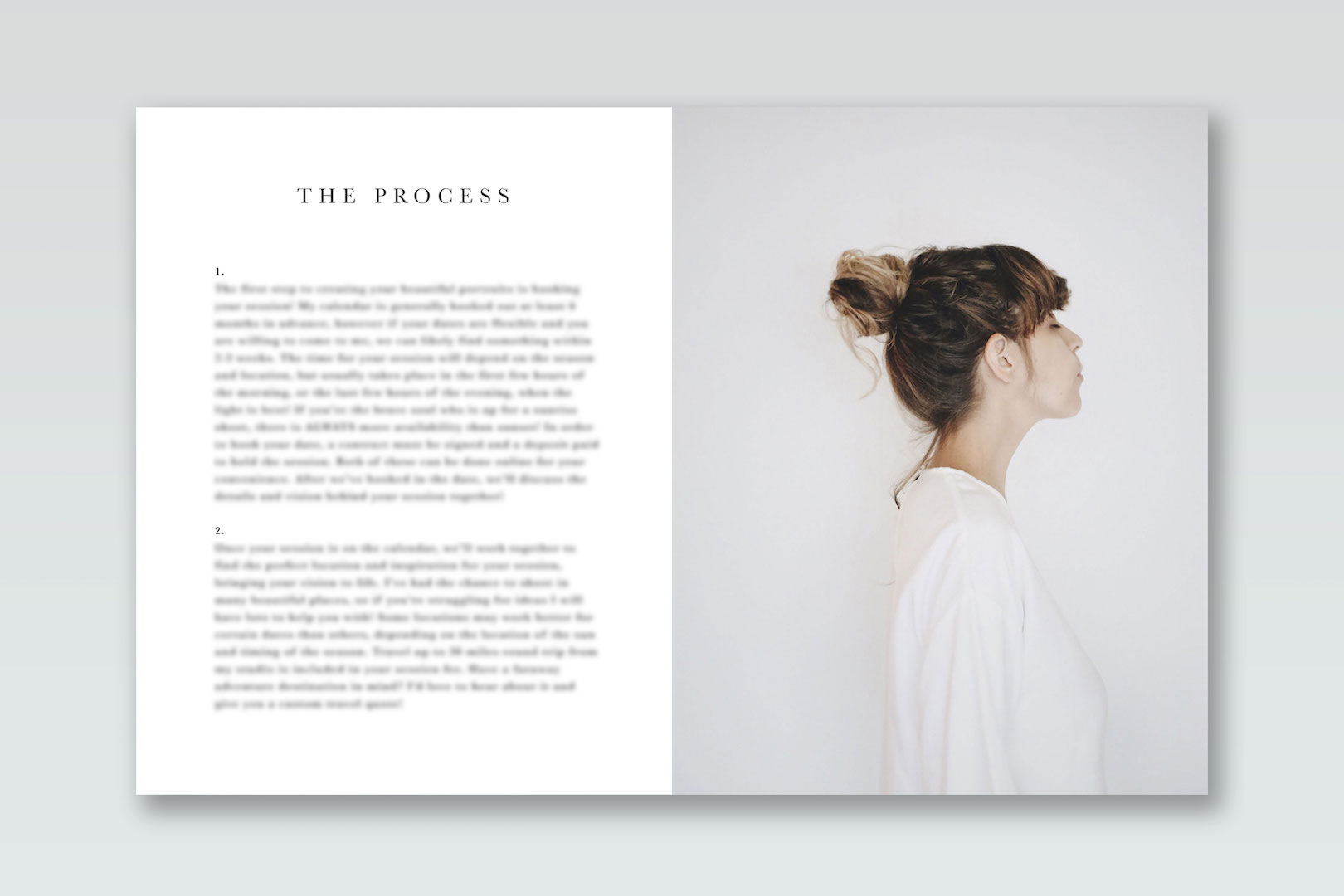 The text is pre written with a general portrait photography in mind, so all you have to do is customize it to fit your specific type of photography.